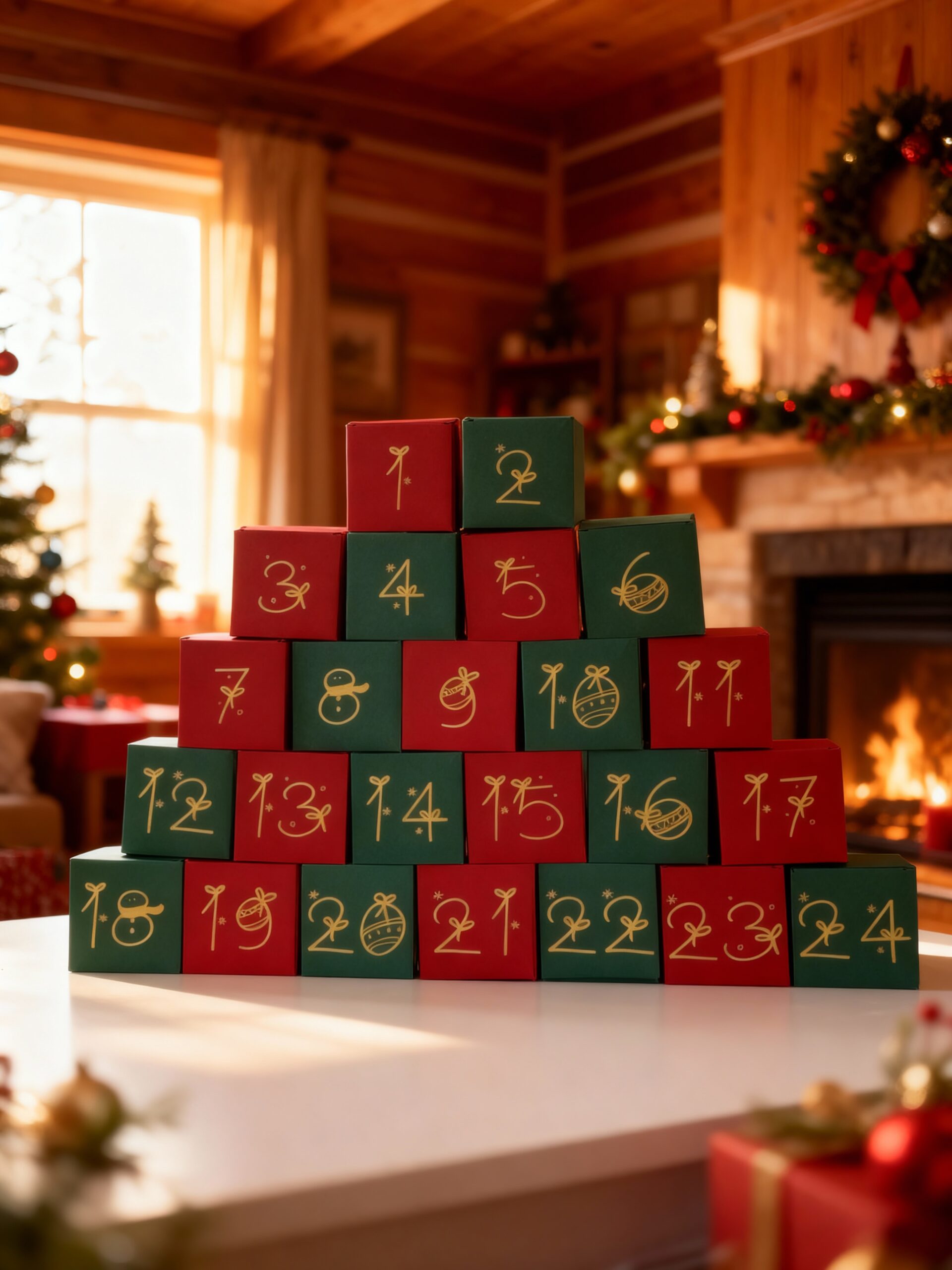 Las cajitas que ves en la foto son solo ilustrativas: para que todo llegue perfecto, lo vamos a empaquetar bien 📦💖 y recibirás 24 paquetes numerados del 1 al 24, listos para abrir cada día. Además, cada paquetito viene con su mensaje ✉️✨.