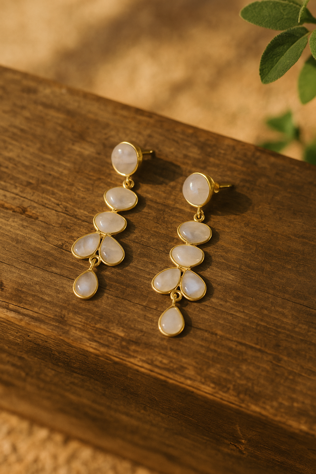 La piedra lunar, conocida por su conexión con la intuición, la creatividad y la energía femenina, aporta un toque de magia y equilibrio emocional a quien los lleva.